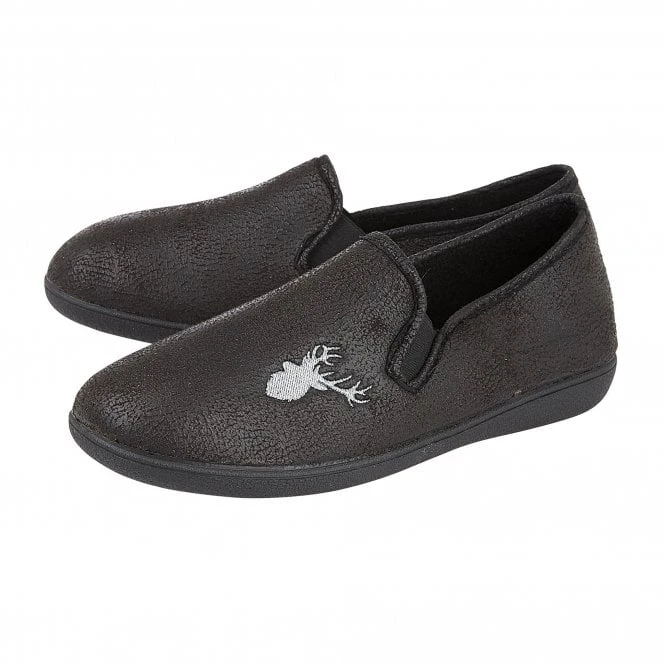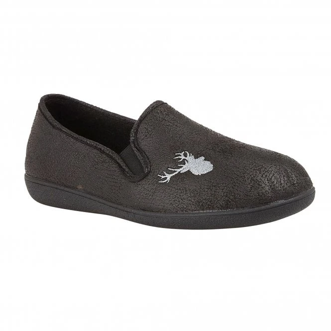 Focusing on comfort and wearability is the Lotus men’s Claude slipper. This traditional, full shoe, black slipper is crafted from faux leather and features an embroidered stag’s head on the upper. Practical features include discreet elasticated side panels helps to get them on/off with ease and a rubber outsole for enhanced durability. Comfort is also addressed by the incorporation of memory foam in-socks.