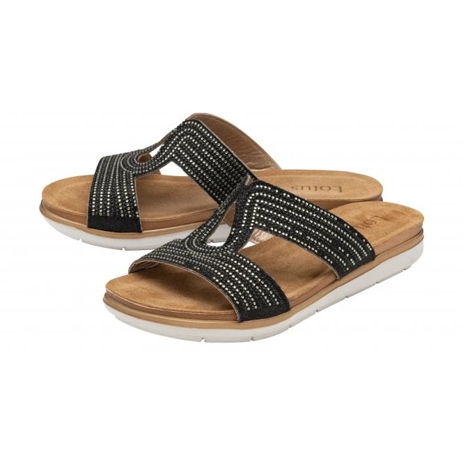 Add some sparkle to your day and evening looks this summer with the Lotus Nadya open toe sandal. This almost flat, slip-on, black mule boasts a flurry of diamantes on the upper and it encompasses a leather footbed, making it the perfect addition to any capsule holiday wardrobe. Nadya is not only glamorous, but also a pure delight to wear too.
