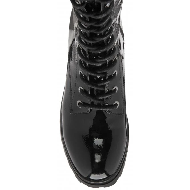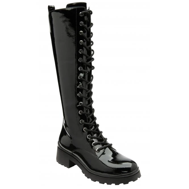The Lotus Dinah knee high boot exudes military vibes that will undoubtedly update a whole host of looks. Resting on a chunky cleated platform sole unit, featuring a wearable a 3cm block heel and finished with a glossy black patent upper, this understated women’s boot will ramp up your style credentials. Dinah is also fitted with an inside zip, so the laces need not be adjusted to get this striking style on/off.