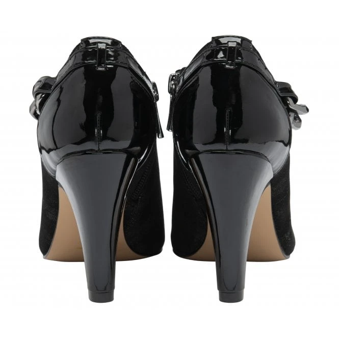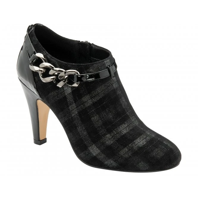 Achieve enduring style with the women’s Lotus Alison shoe-boot. Crafted with a black and pewter plaid textile and featuring a soft almond pointed toe, a glossy patent heel counter and a 9cm stiletto heel, but it is the maximalist chain trim that gives this black women’s shoe-boot a distinctive and contemporary edge.Â