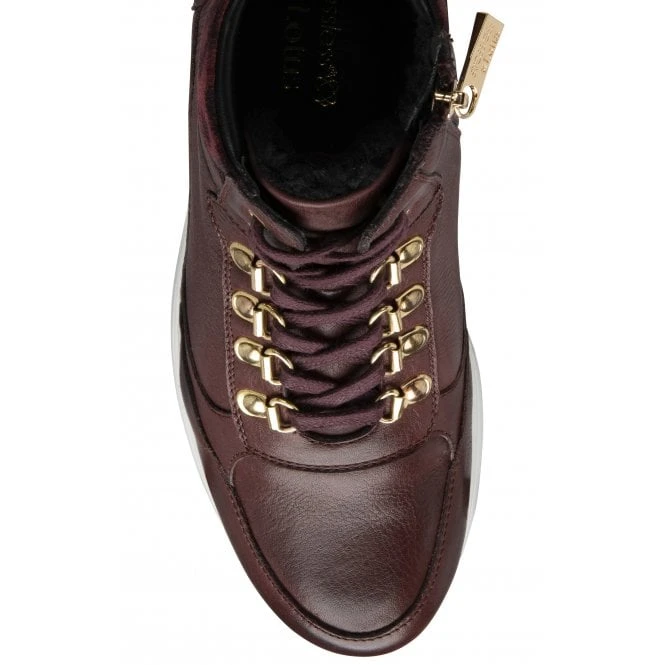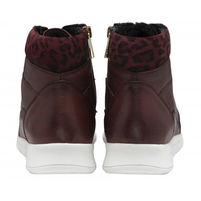 Casual looks call for the Saskia high top trainer from Stressless by Lotus. This on-trend style takes styling cues from the hiking boot trend by incorporating D-ring lacing and a padded ankle collar that is accentuated by a striking leopard print. Nestled on a fresh white sole unit, this women’s lightweight burgundy leather trainer is highly wearable due to the incorporation of a cushioned insock.