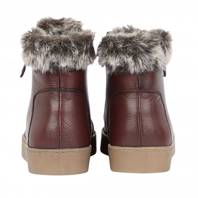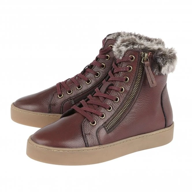 Make light work of autumnal dressing and step out in a pair of Siobhan high top trainers from Lotus by Stressless. Crafted from premium leather, this lightweight and casual women’s lace-up burgundy trainer is accompanied by a functional outside zip and a sumptuous faux fur trim. As well as having a distinctive finish, this Lotus women’s casual trainer also boasts comfort features including shock absorbing properties and a padded insock.