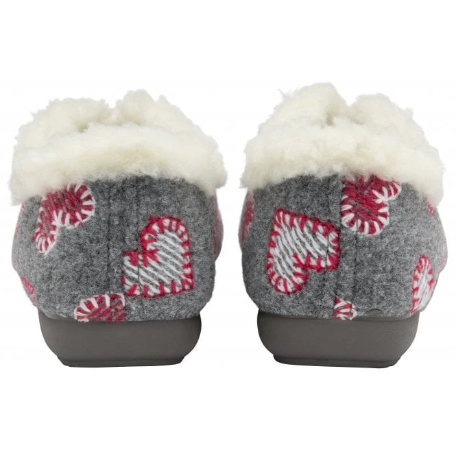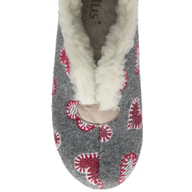 Cute heart detailing that is further accentuated by decorative stitching is creatively applied to the soft textile upper of the Lotus ladies’ Bernie slipper. This grey full shoe slipper is further accentuated by a sumptuous faux fur collar and lining to provide additional warmth in the colder months. This Lotus women’s slipper also encompasses a cushioned insock and a flexible hard outsole, which makes Bernie not only exceptionally comfortable but extremely practical too.
