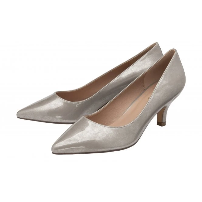 The Lotus Rachel heeled pump is just the ticket for special occasions, but it’s also ideal for adding a touch of luxury to everyday looks. This Lotus grey court shoe is understated, yet it is finished to exacting standards with a pearlised patent upper and a 6.5cm kitten heel. This women’s court shoe is so versatile and exceptionally wearable that any wardrobe will be incomplete without it. The Rachel court shoe coordinates seamlessly with the Lotus Raine clutch bag.