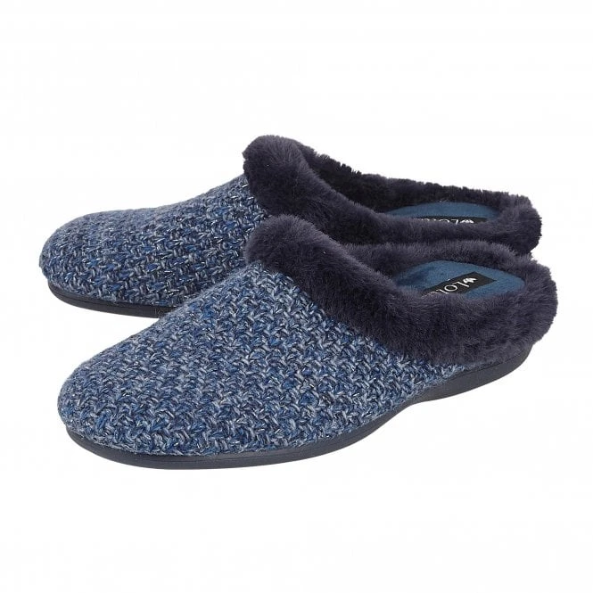 Incredibly comfortable and a delight to wear is the Lotus Ada slipper. Boasting memory foam in-socks to make this Lotus women’s navy slipper exceptionally comfortable, a rubber sole unit to improve durability and a multi-coloured textile knitted upper to add flair. What’s more, this feminine Lotus slipper encompasses a sumptuous navy faux fur collar to give extra warmth during the colder months.