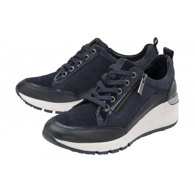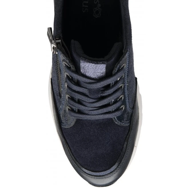Make a style statement whilst enjoying exceptional comfort with the Sassy women’s trainer from Stressless by Lotus. This navy lace-up sneaker boasts a premium leather upper that is accentuated by animal-print panels, a functional zip, a crisp white sole unit and an on-trend 4.5cm wedge heel. What makes this Lotus women’s lightweight trainer extremely wearable and unbelievably comfortable is the shock absorbing properties within the cushioned insock.