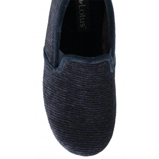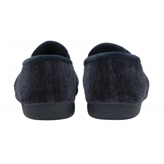 The Sheldon men’s slipper from Lotus is an absolute pleasure to wear. The soft patterned navy velour upper is met with discreet elasticated side panels to assist with putting them on/off effortlessly, whilst the memory foam in-socks deliver exceptional comfort. These Lotus men’s full shoe slippers also boast rubber outsoles for enhanced durability.Â