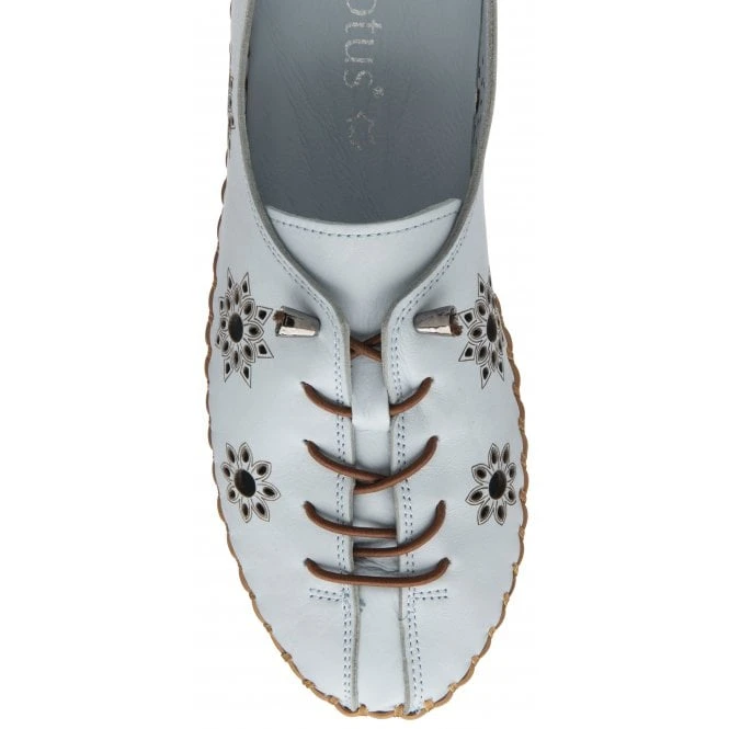 The perfect accompaniment to off duty looks is the Lotus Kristen shoe. Giving this casual pale blue shoe a remarkable finish is laser cut out detailing that is accentuated by decorative etching on the upper. This Lotus slip-on shoe is meticulously crafted with a leather upper and lining, elasticated laces and it features a heel tab to ease getting this shoe on/off. Finished with a gum sole unit that is trimmed with blanket stitching, a subtle 4cm wedge heel and cushioned insoles, this women’s pale blue shoe is a pure delight to wear.
