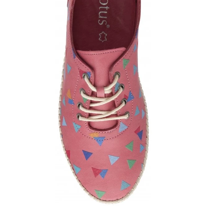 It’s easy to see why the Lotus Kay shoe will quickly become a go-to on dress down days. This casual pink shoe boasts a multi-coloured graphic print that adds a fun and unique twist to this lace-up shoe. Boasting a leather upper and lining, a cushioned insole and resting on a crisp white sole unit that is finished with a blanket stitch trim, this Lotus women’s shoe is highly distinctive and exceptionally wearable.