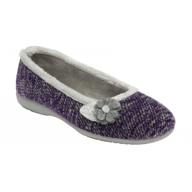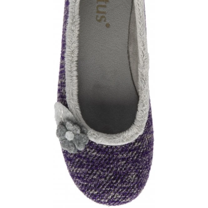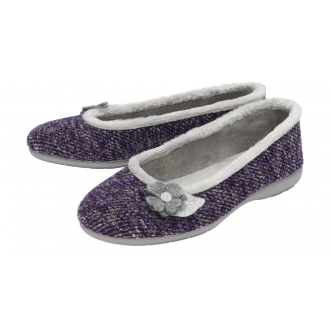 A highly appealing offering from Lotus, is the new Shauna slipper. This cute ballerina inspired slipper is crafted with a multi-coloured knitted upper that is finished with floral applique detailing and a short faux fur collar. This Lotus ladies’ purple slipper also features an incredibly soft lining, a cushioned insock and a rubber outsole making Shauna not only exceptionally comfortable but practical too.