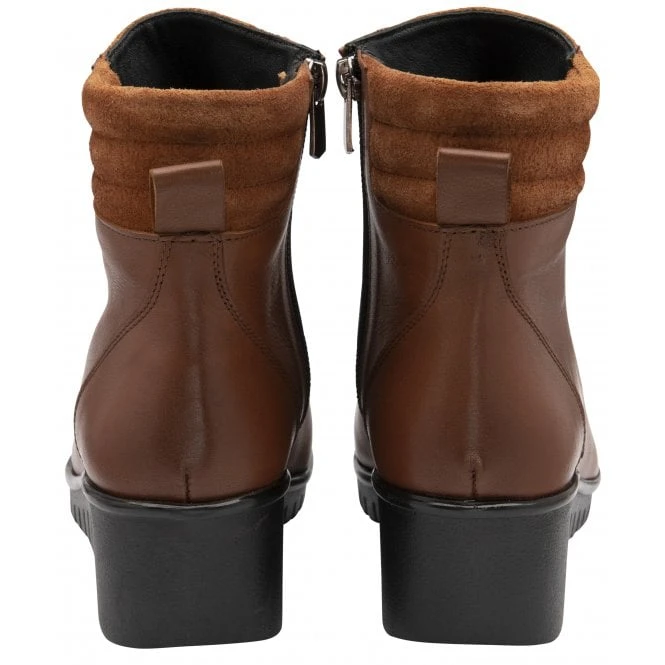 Destined to be a go-to footwear staple is the Lotus Delphine ankle boot. This seriously stylish and highly versatile lace-up tan boot unites premium leather and sumptuous suede on the upper to give a quality finish. Resting on a 4.5cm wedge heel, this Lotus women’s ankle boot will give any wardrobe a seasonal refresh.