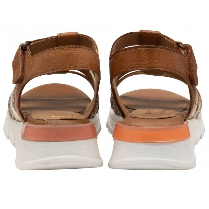The Shiloh Stressless by Lotus sandal is a true season essential. As well as taking styling cues from a gladiator sandal, this multi strap sandal is further enhanced by metallic detailing and a leopard printed strap to ensure that it is season relevant. Resting on a fashionable cleated sole unit and encompassing an adjustable rip-tape fastening ankle strap and shock absorbing properties in the cushioned insock, this exceptionally comfortable women’s tan sandal is a serious contender for being the must-have sandal of the season!