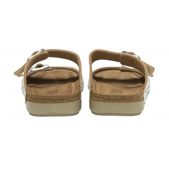 Downtime dressing calls for the Lotus Cortona mule. Double straps finished with an adjustable buckle fastening make up the upper of this almost flat, slip-on, white mule. This women’s summer essential sandal also features a leather insock for enhanced comfort.